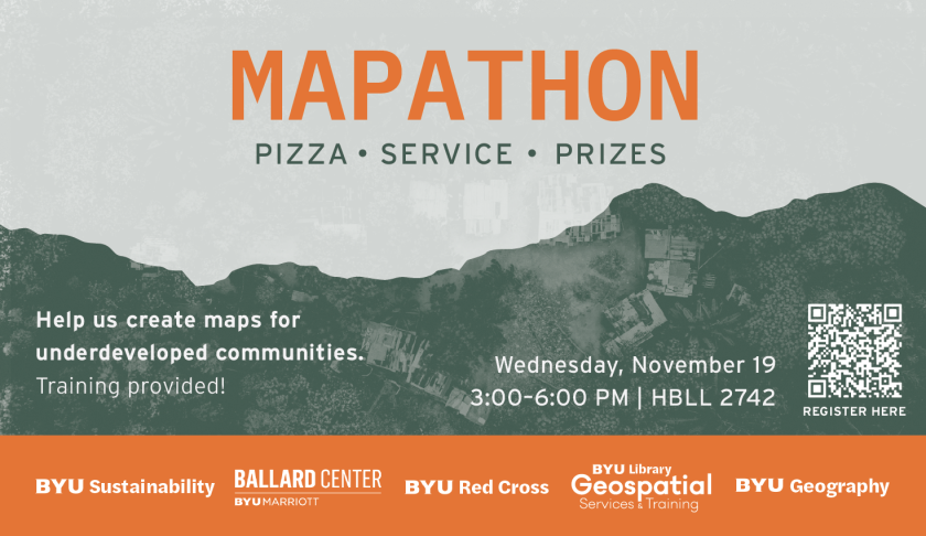 Thanks to the BYU Library Geospatial Services & Training Lab, the Geography department, the Ballard Center, the Sustainability Office, BYU Red Cross, and all volunteers!